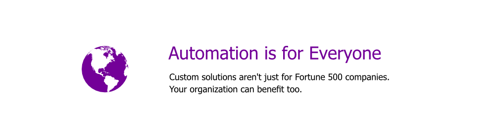We believe that custom software should be within reach of small to medium sized organizations, and we are dedicated to helping them realize the benefits of business process automation.